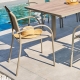 Traitée contre la décoloration et contre la corrosion, la structure de cette chaise s'entretient au quotidien à l'eau savonneuse. Une fois empilés, il est possible d'abriter vos fauteuils sous une housse compatible (Réf. : 146749 et Hambo 186890).