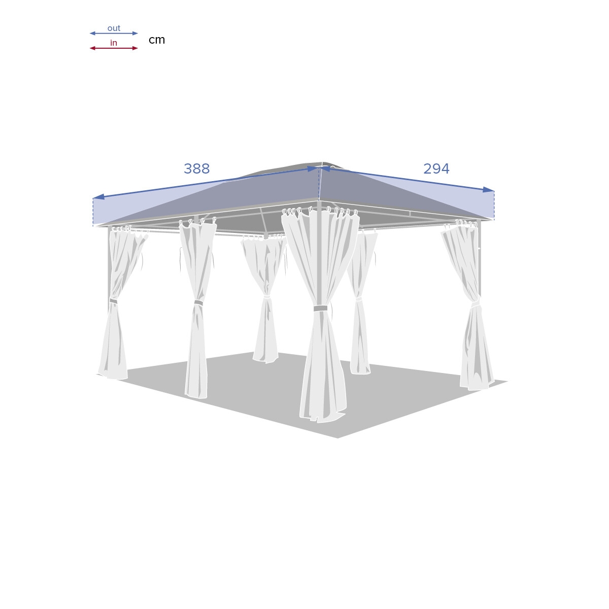 Les dimensions de cette toile "Santorini" la rendent compatible avec la tonnelle du même nom. Elle s'installe rapidement, en la fixant sur la structure de votre tonnelle.